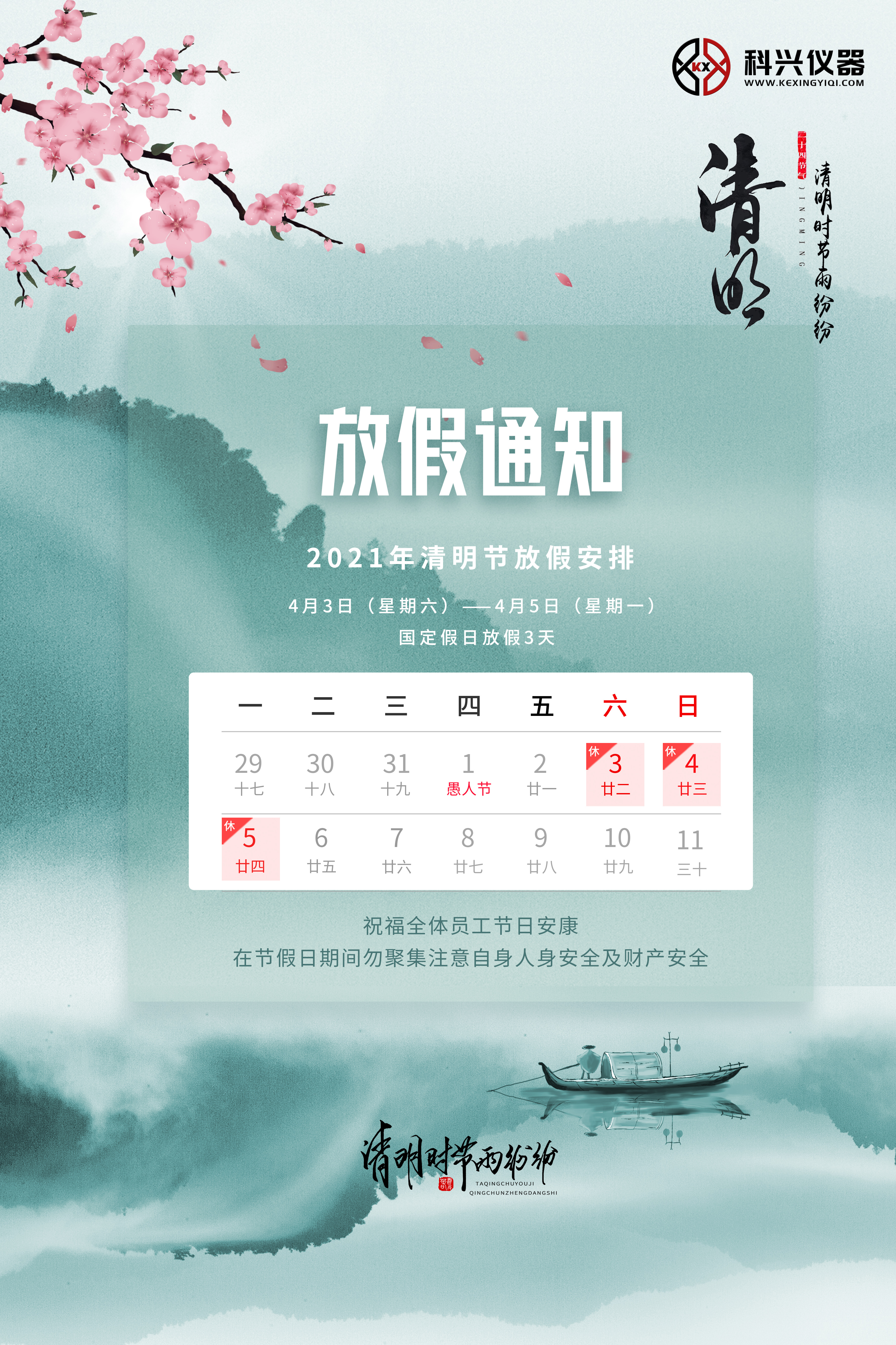 當(dāng)前位置您當(dāng)前的位置: 首頁>新聞中心>公司動(dòng)態(tài)>科興儀器2021年清明節(jié)放假通知