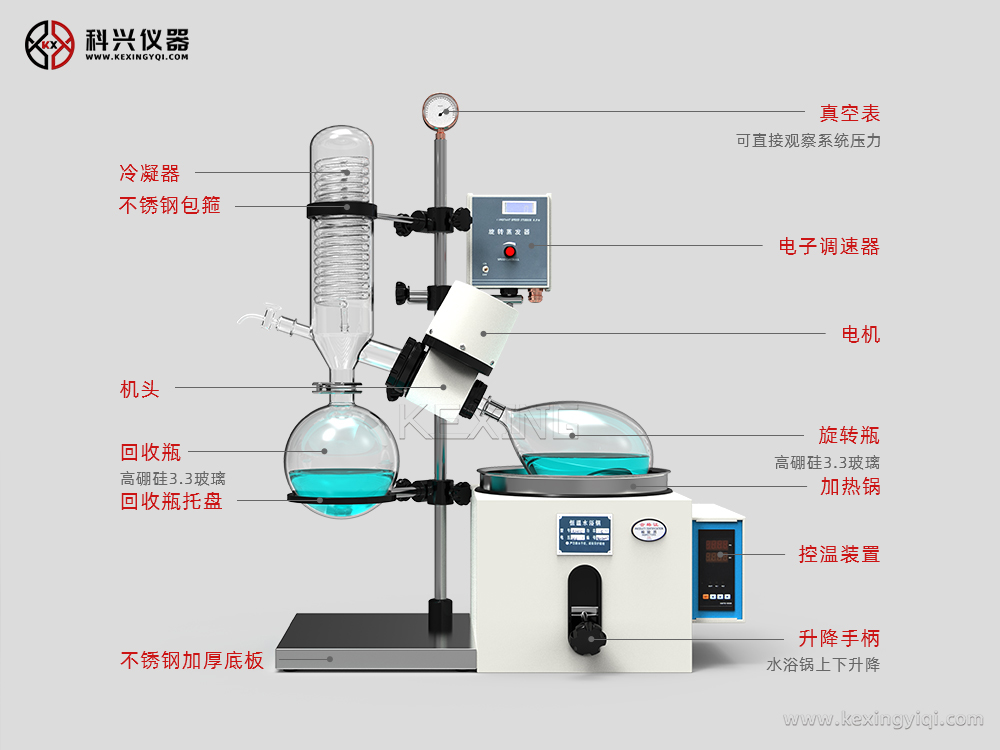 旋轉(zhuǎn)蒸發(fā)儀主要用于醫(yī)藥、化工和生物制藥等行業(yè)的濃縮、結(jié)晶、干燥、分離及溶媒回收。其原理為在真空條件下,恒溫加熱,使旋轉(zhuǎn)瓶恒速旋轉(zhuǎn),物料在瓶壁形成大面積薄膜,高效蒸發(fā)。溶媒蒸氣經(jīng)高效玻璃冷凝器冷卻,回收于收集瓶中,大大提高蒸發(fā)效率。特別適用對(duì)高溫容易分解變性的生物制品的濃縮提純。產(chǎn)品可與循環(huán)水式多用真空泵、隔膜真空泵、低溫循環(huán)(真空)泵,循環(huán)冷卻器,恒溫循環(huán)器,低溫冷卻液循環(huán)泵等配套組成系統(tǒng)裝置。