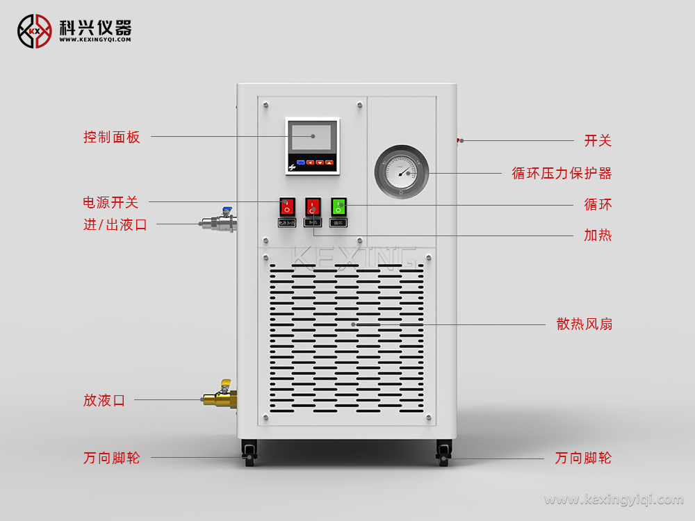 密閉型加熱循環(huán)器,是指導熱介質在封閉的循環(huán)系統(tǒng)中采用電加熱方式,通過循環(huán)泵輸出導熱流體加熱配套反應容器的一種新型加熱設備。